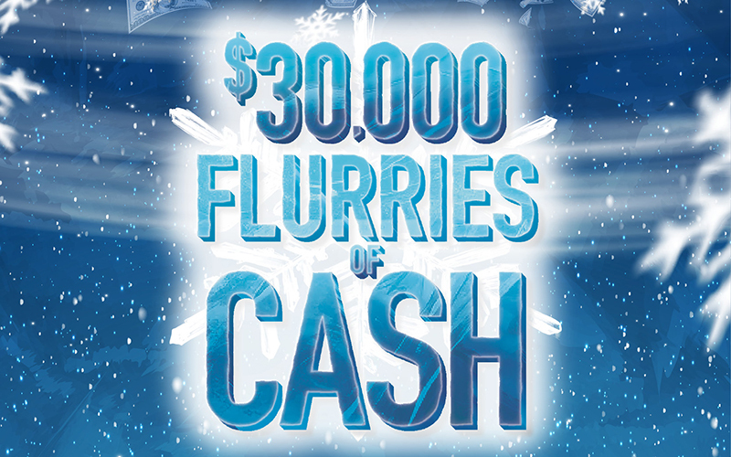 Play with your Club Wyandotte card and enjoy Hot Seat drawings every 20 minutes for a Progressive FREE PLAY prize up to $300! Plus, drawn winners will receive a $50 Dining Credit to Twin Bridges Restaurant and 100 Bonus Entries into the $30,000 Flurries of Cash Giveaway!