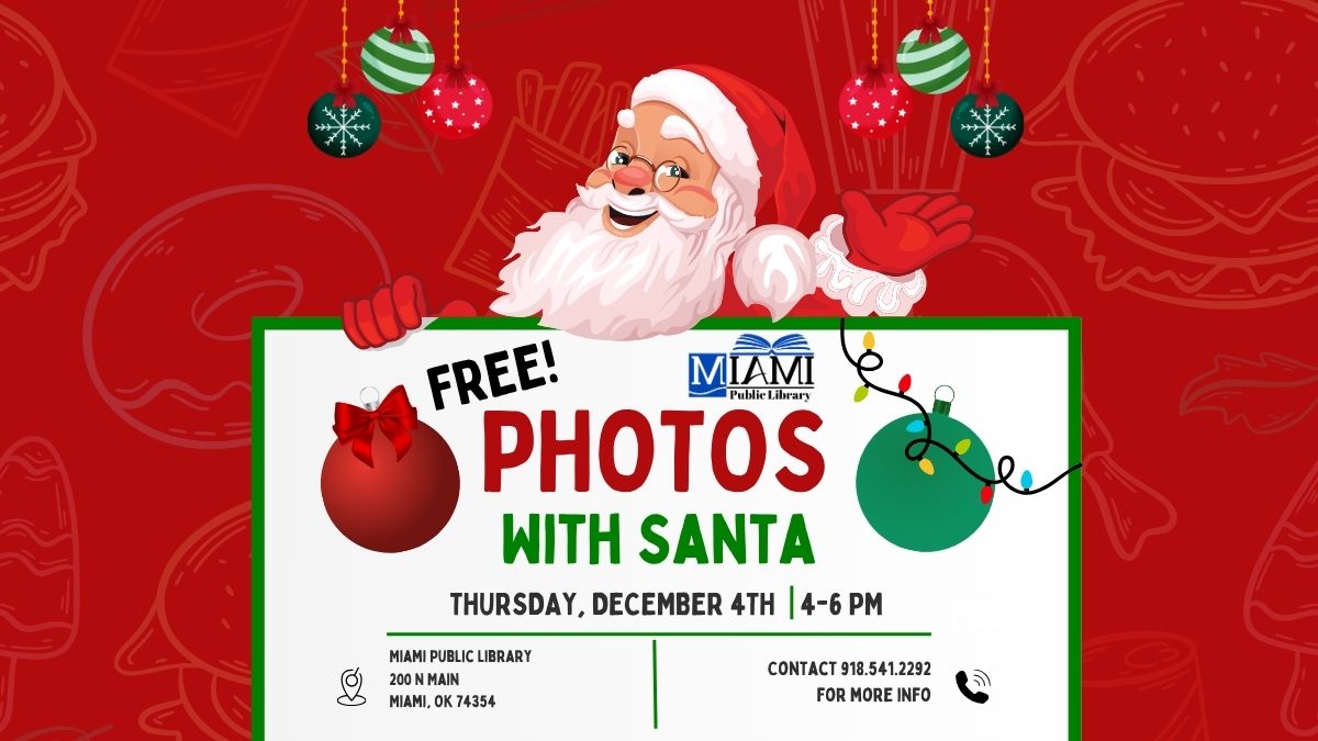 Bring your holiday cheer and your cameras! The Miami Public Library invites families to a joyful evening of festive fun and FREE Photos with Santa.