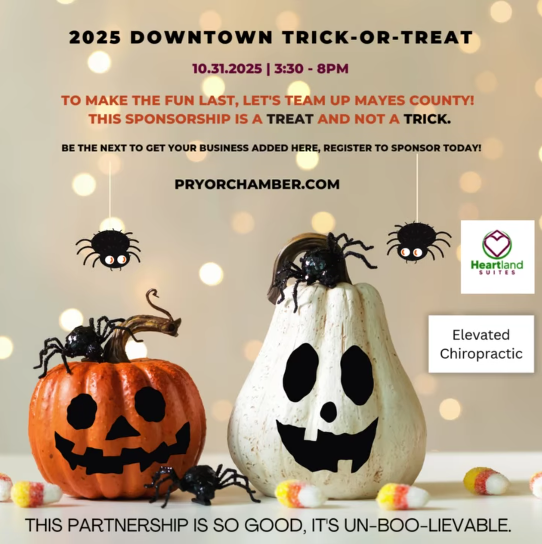 Get ready for a fang-tastic evening in Downtown Pryor as local businesses and community partners team up to bring the ultimate Halloween experience to Mayes County! The annual Downtown Trick-or-Treat is a safe, family-friendly event filled with candy, costumes, and community spirit.