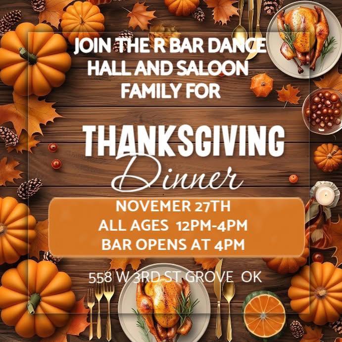 Celebrate the season of gratitude with the R Bar Dance Hall and Saloon family! Join us for a festive Thanksgiving Dinner filled with warmth, good food, and great company. Everyone is welcome β bring your family, your appetite, and your holiday spirit!